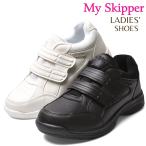 レディース スニーカー マジック 軽量 幅広 3E 反射材 マジック 通勤 通学 作業 仕事 ホワイト ブラック 靴 My Skipper 0104