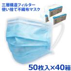 三層構造 プリーツマスク DisposableFaceMask 使い捨て不織布マスク ブルー 50枚入り×40箱