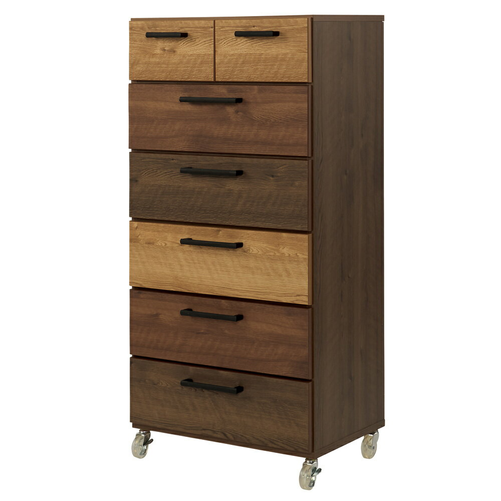 【クーポン10%OFF 1/30迄】 キャスター付きモダンクローゼットチェスト 6段・高さ124.5cm幅60cm 洗面所収納 隙間収納 トイレ 洗面所 ランドリー収納 632935 \LINE友だち登録でクーポン/