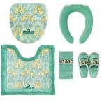 トイレマット 5点 セット 日本製 グリーン U型便座カバー 北欧 おしゃれ 普通型 風水 トイレマットセット 5点セット ふたカバー ペーパーホルダーカバー スリッパ マット 鮮やかな緑 イエロー 金運の黄色 オカ プロヴァンス クリスマス プレゼント