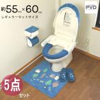 トイレマット 5点 セット ネイビー 洗浄暖房型 便座カバー 普通兼用 フタカバー オカ ナタルシーナリー おしゃれ 北欧 ネイビー 滑り止め加工 洗濯しやすい