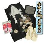 七五三 3歳 男の子 着物 正絹被布雪駄セット 黒 鷹 手描き 変わり無地精華生地 選べる信玄袋 足袋付き 日本製