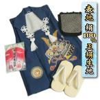 七五三 3歳 男の子 着物 正絹被布雪駄セット 青紺 兜 手描き 変わり無地精華生地 選べる信玄袋 足袋付き 日本製