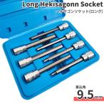 ソケットレンチ用 ヘキサゴンソケットセット 7本組 工具 六角ビット ロングタイプ 差込角対応 変換アダプター付き 持ち運び便利 ケース入り 作業用 修理 DIY