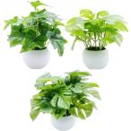 観葉植物 光触媒 ミニ 鉢植え 3個 セット 消臭 & 抗菌 フェイクグリーン 造花 おしゃれ(光触媒 モンステラ ポトス アイビー)
