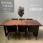 ダイニングセット 6人用 7点 ダイニングテーブル 6人掛け 180 おしゃれ 木製 アイアン 無垢 一枚板風 シンプル インダストリアル 黒 モダン