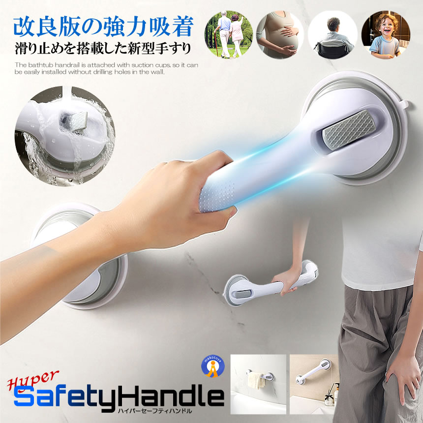 吸盤手すり ドアハンドル 取っ手 セーフティーハンドル 強力吸盤 介護 介助 入浴補助 便利 安心 取り付け簡単 浴槽手すり トイレ 転倒防止 繰り返