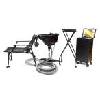 訪問美容師・出張美容師 4点セット 10mホース 移動シャンプー台「ワンシャン」Aショートタイプ+シャンプーチェア+折りたたみワゴン+ミラー付き美容ボックス