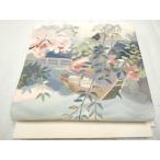 平和屋着物●爪掻き本綴れ 八寸名古屋帯 飛鶴花文 金銀糸 正絹 逸品 DABD0023op