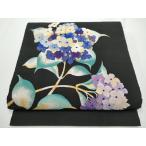 平和屋着物●爪掻き本綴れ 八寸名古屋帯 紫陽花 黒地 金銀糸 正絹 逸品 CABE0134hy