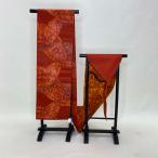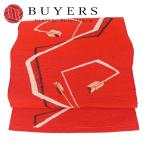 中古 名古屋帯 八寸 正絹(金銀糸除く) レッド 名古屋仕立て モダン お洒落 和装 呉服 和服 きもの レディース 女性