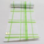 反物 紗 夏用 格子 八寸名古屋帯用 ポリエステル 白色 黄緑色 未仕立て 着物帯 長さ480cm