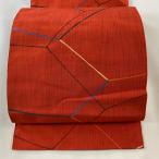 名古屋帯 優品 八寸名古屋帯 松葉仕立て 幾何学模様 朱色 正絹 中古 在庫一掃