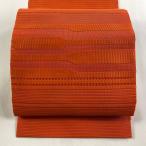 美品 名古屋帯 優品 夏帯 八寸名古屋帯 絽 松葉仕立て 幾何学模様 縞 オレンジ 正絹 中古 在庫一掃