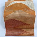 【在庫一掃】 名古屋帯 優品 夏帯 八寸名古屋帯 松葉仕立て 山並み オレンジ 正絹 【中古】