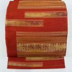 名古屋帯 なごや帯 中古 リサイクル リユース 八寸 普段着 お洒落着 紬 小紋 正絹 赤 オレンジ ハンドメイド 1876