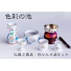 国産 5具足 仏具セット おりん4点セット ■ 色彩の池 ■ 仏壇 お供え ■ 香炉灰付 お盆 お彼岸 お墓参り 供養