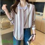 ブラウス レディース 40代 春秋 オシャレブラウス シフォンシャツ 長袖トップス カジュアル 配色ストライプシャツ おしゃれ 大人 通勤 ゆったりシャツ30代新作