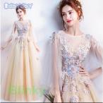 ウエディングドレス ロング丈 ライトイー豪華レース刺繍七分袖ラウンドネック気質優雅大きいサイズ 結婚式 二次会 演奏会 花嫁 撮影 編み上げ式