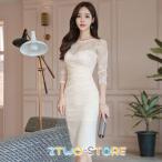 タイトワンピース 膝丈 長袖 レース袖 エレガント パーティー 二次会 ワンピースドレス 20代 30代 40代 秋 冬 ワンピース