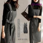 ジャンパースカート レディース 秋冬 きれいめ サロペット ワンピース ジャンスカ オールインワン フレア Vネック 膝下 ミモレ丈 30代 40代