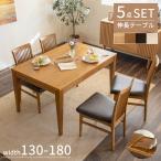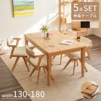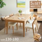 ダイニングセット メラミン天板 伸長式 伸縮式 4人掛け 6人掛け ダイニングテーブル セット 5点 ナチュラル ブラウン 130 150 160 180 cm 北欧 4人 6人