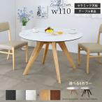 セラミックテーブル ダイニング 丸テーブル 幅110 cm ラウンドテーブル ラバーウッド 無垢材 北欧 モダン セラミック天板 3色 ブラック グレー ホワイト