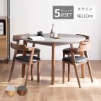 【5点セット】ダイニングセット 110cm 丸テーブル 4人掛け 円形ダイニング ダイニングテーブルセット PVC 合皮レザー 石目柄 メラミン天板 北欧 カフェ