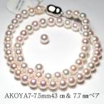 ネックレス あこや真珠7-7.5mmパールネックレスと7.5mmペア2点セット 約43cm ピンクがかったホワイト色 冠婚葬祭 成人式 入学式 ギフトで人気