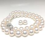 アコヤ真珠 フローレンスパール パール ネックレス 2点セット イヤリング/ピアス ホワイト 9.0-9.5mm 鑑定書 宇和島 あこや