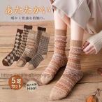 靴下 ソックス レディース 暖かい 5足セット クルーソックス 秋冬 厚手 ウール 抗菌防臭 おしゃれ かわいい 防寒 ぽかぽか 冷え症対策 弾性