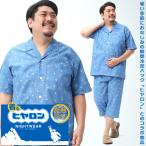 パジャマ 上下セット 大きいサイズ メンズ 着るヒヤロン 背あて接触冷感 ペンギン柄 7分丈 半袖 七分丈 涼しい サックス 3L 4L 5L 6L