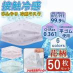 マスク 不織布 チュールマスク 花柄 50枚入り カラー 夏 レース柄 柄入り チュール 柄 冷感 使い捨て 花柄 立体 四層構造 おしゃれ 大人 女性 飛沫 母の日