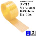 ビニールカーテン のれん式 超耐寒(リブ付)厚み3mm×幅300mm×長さ30m 1巻 / 冷蔵庫 冷凍庫 間仕切り