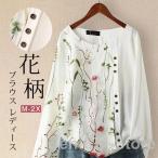ブラウス レディース シャツ チュニック 長袖 トップス 切替 花柄 秋 春 夏 ボタン飾り 体型カバー ゆったり 綿麻風 20代 30代 40代 カジュアル 秋物