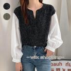 ブラウス 異素材 ボリュームスリーブ トップス レディース シャツブラウス かわいい 秋 2024年 韓国服