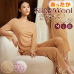 初売り☆ルームウェア シルクウール セットアップ 配色 レース 長袖 パジャマ 部屋着 レディース スカラップレース 防寒 あたたか 冷えとり 上下セット M/L/XL