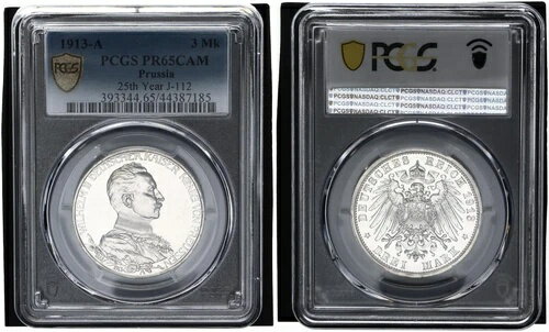 プロイセン 3 マーク 1913-A 皇帝制服 PCGS PR65CAM 106955