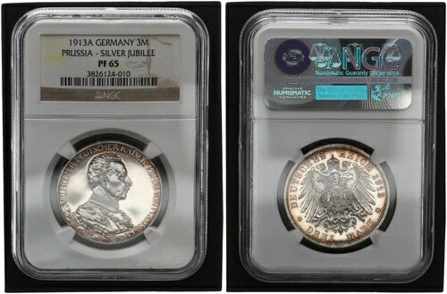 プロイセン 3 マーク 1913 ヴィルヘルム2世 制服 NGC PF 65 ポリッシュプレート 108337-