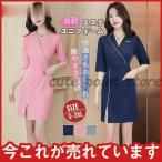 ユニフォーム エステ サロン通勤 レディース 女性 制服おしゃれ 半袖七分袖 ワンピース 美容室 理容室 ネイルサロン サロンウェア ネイルサロン