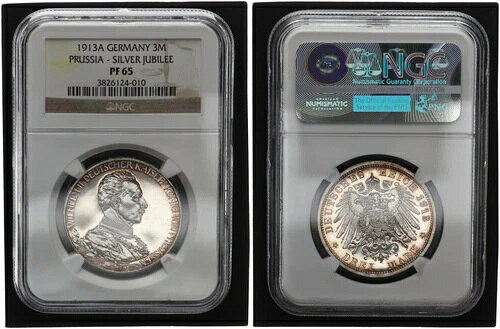 プロイセン 3 マーク 1913 A ヴィルヘルム2世 制服 NGC ペニッヒ 65 プルーフ 108337