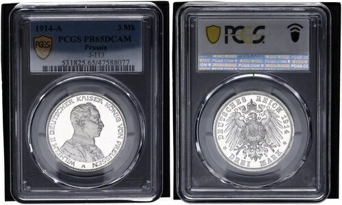 プロイセン 3マーク 1914-A ヴィルヘルム2世 胸像(制服着用) PCGS PR65DCAM PP 118419