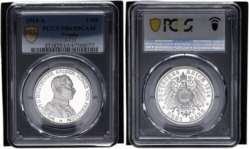 プロイセン 3マーク 1914-A ヴィルヘルム2世 胸像 制服着用 PCGS PR65DCAM Pf 118419