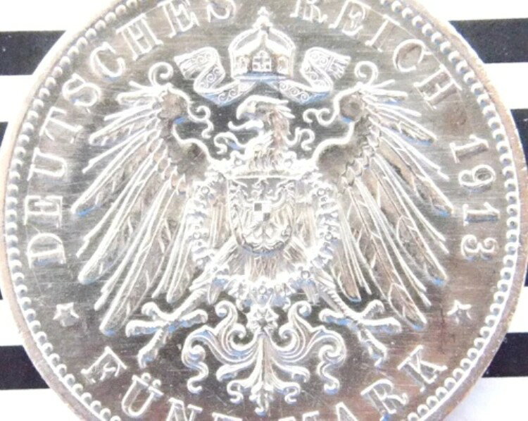 ドイツ 5マルク 1913年 A プロイセン 制服 ヴィルヘルム2世 90%銀貨 帝国 第一次世界大戦 +UNC