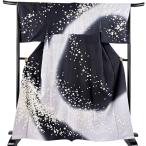 訪問着 身丈164cm 裄丈66cm M 袷 桜 花弁 刺繍 金糸 黒 正絹 逸品 中古