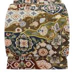 袋帯 逸品 華文 草花 金糸 相良刺繍 茶色 六通 正絹 中古