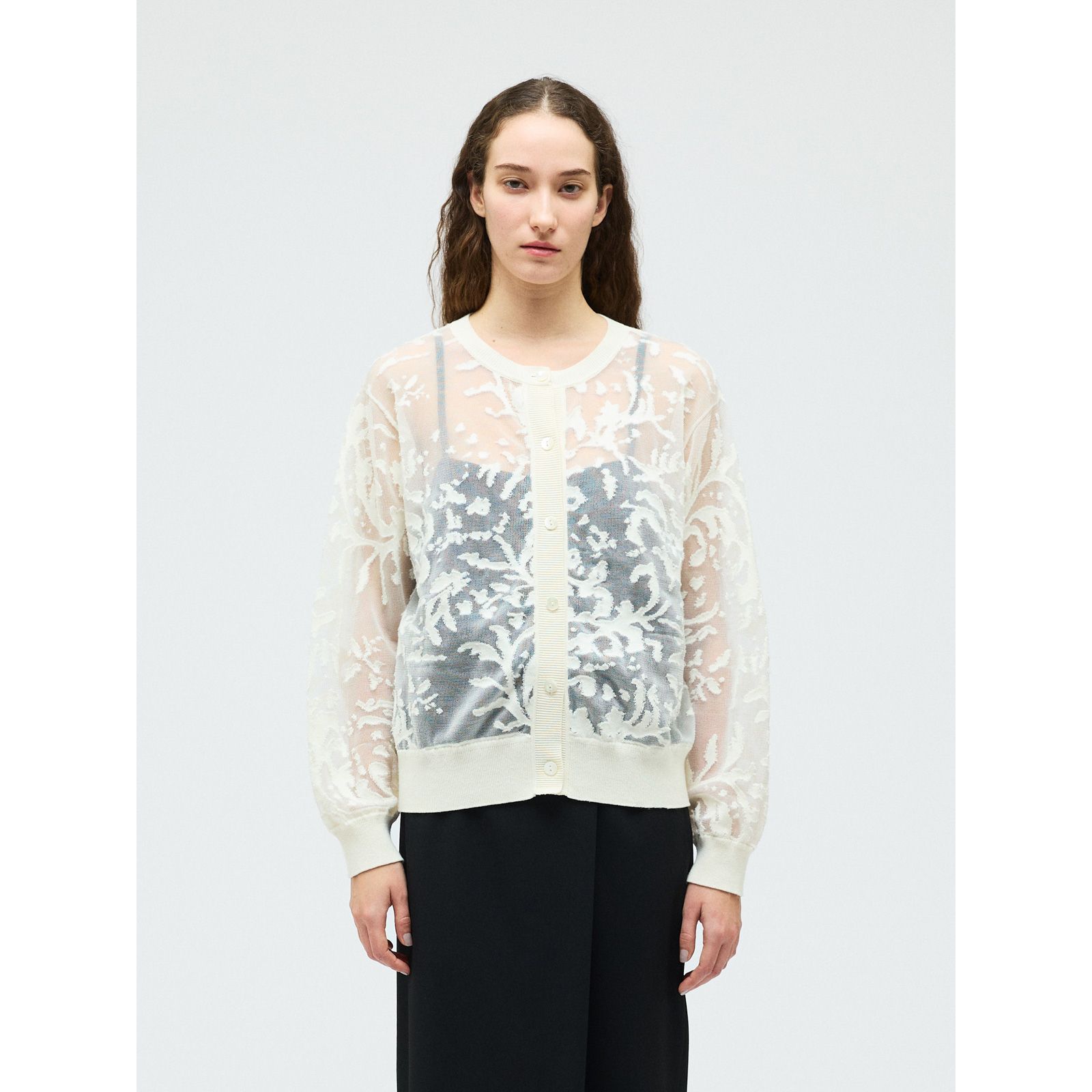 mizuiro ind(ミズイロインド)/メッシュ刺繍クルーカーディガン