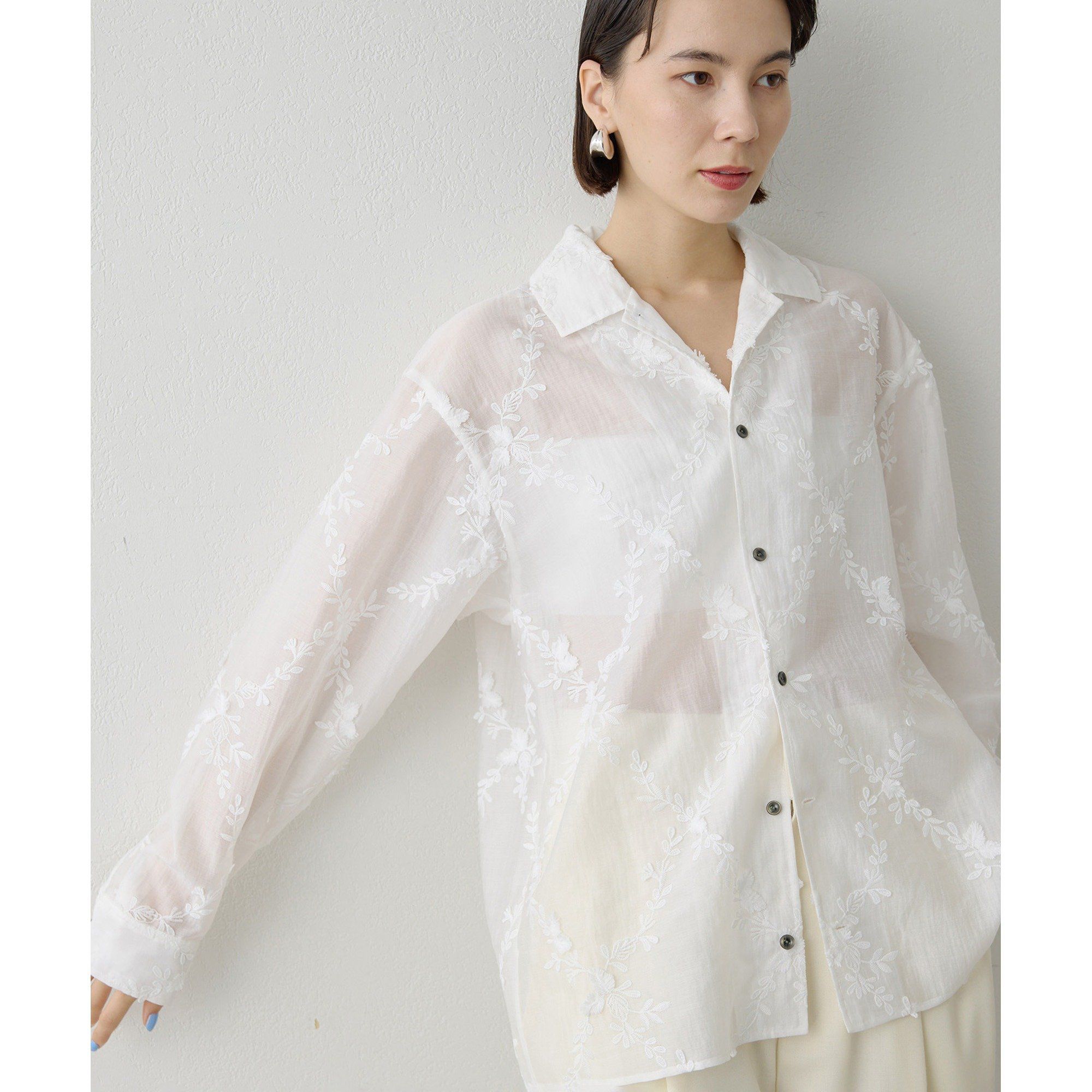 アンヌーク anuke 即日発送 Cutwork Opencollar Shirts 62610418 カットワークオープンカラーシャツ 刺繍シャツ 長袖
