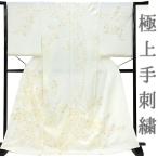 訪問着 手刺繍 総刺繍 正絹 白地 桜 未仕立て 仮絵羽 着物 反物 フォーマル 礼装用 枝垂れ桜 桜枝 丹後ちりめん No.2-0158