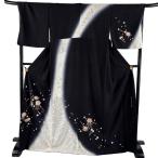 訪問着 身丈170.5cm 裄丈69cm L 袷 国友滋明 落款あり 桜 簪 日本刺繍 金糸 黒 正絹 逸品 中古